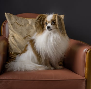 Vous pouvez faire toiletter votre animal avant la séance ou tout simplement le brosser et lui faire porter vos accessoires préférés (nœuds, colliers, foulards ou autre).